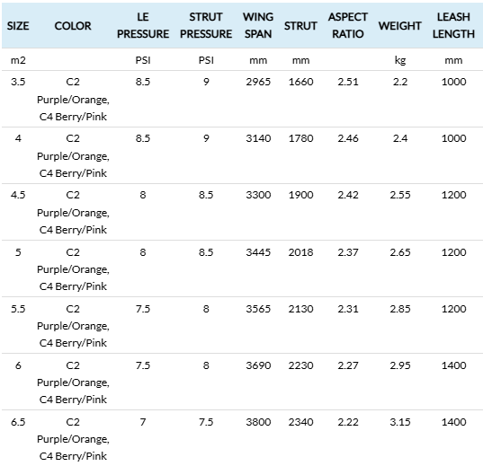 The canopy uses a graduated Ripstop layout with 5x5 panels in the front and 6x6 in the back, ensuring long-term shape stability and reduced stretch under load. PVC windows offer maximum visibility and durability, and the transverse panel layout keeps the critical entry sections stable during acceleration. High tension canopy shaping improves lift generation and allows the wing to fly efficiently at low angles of attack.