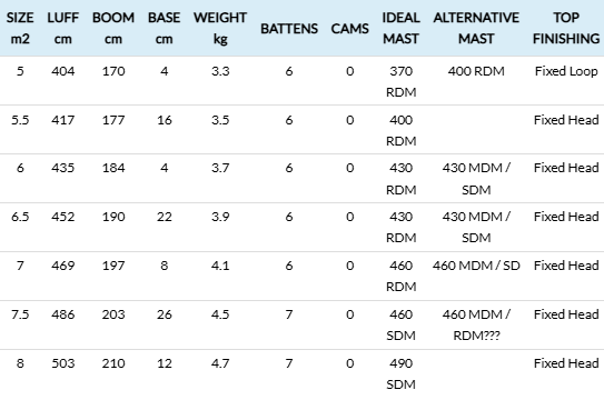 Compared to the original Speedster, the EVO version features a shorter boom and a dynamic batten concept: 6 battens in sizes 5.0 to 7.0, and 7 battens in 7.5 and 8.0. This reduces weight and increases responsiveness while maintaining exceptional aerodynamic stability. It is the only freerace sail in the collection that uses the exact same material specification as our full RS:Racing sails.